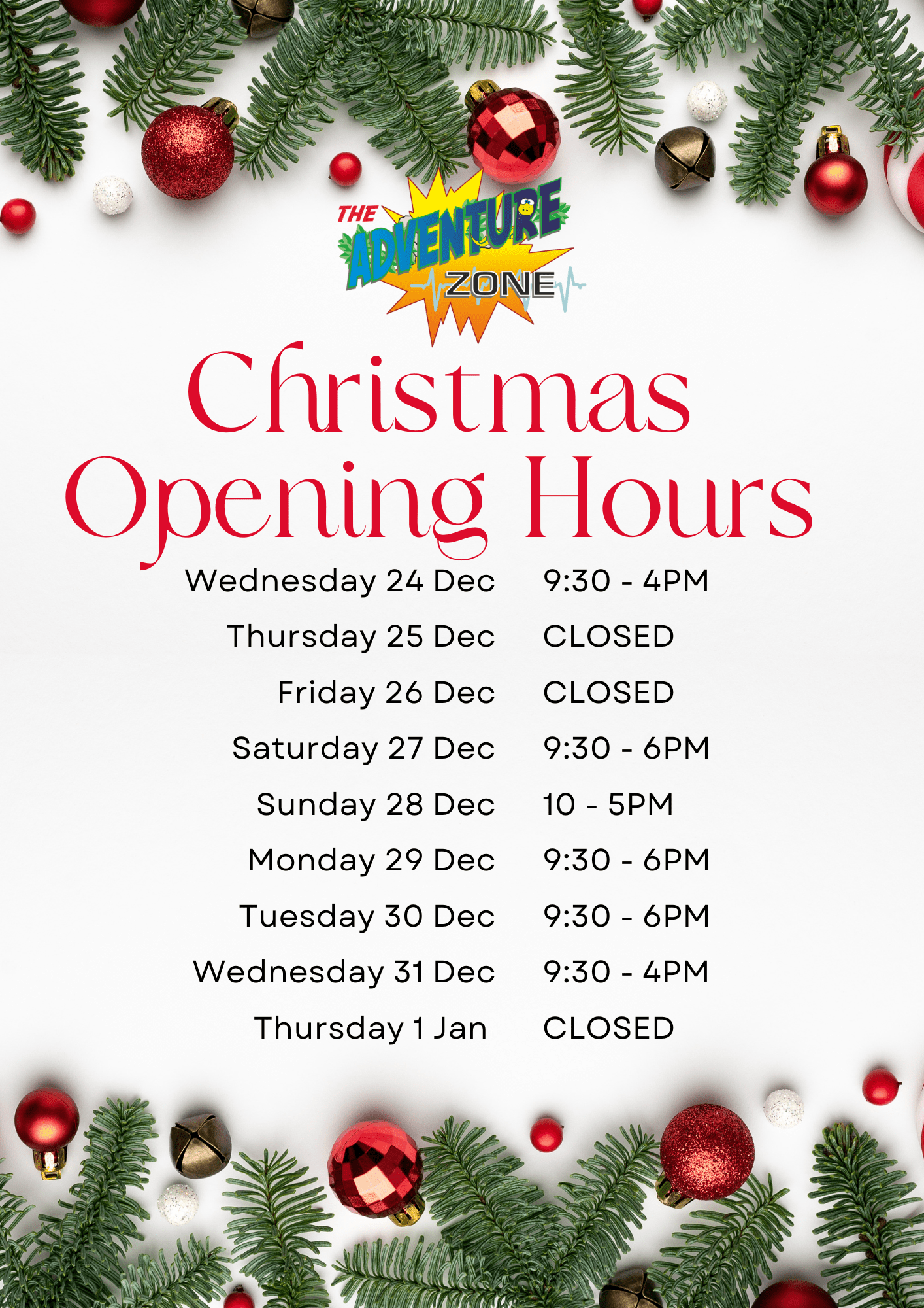 Please see image below for christmas opening times